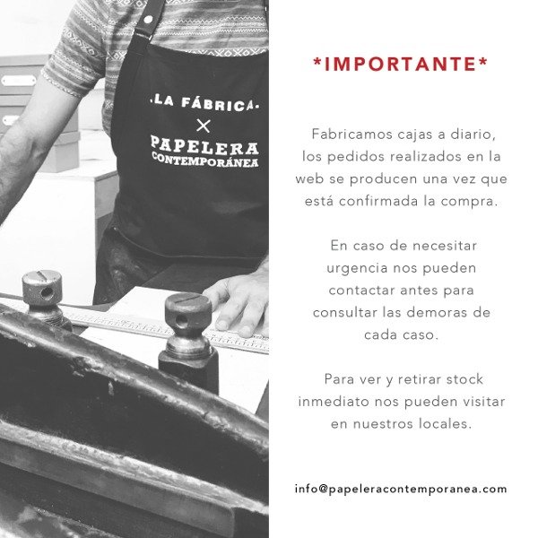 Fabricamos cajas a diario, los pedidos realizados en la web se producen una vez que está confirmada la compra. En caso de necesitar urgencia nos pueden contactar antes para consultar las demoras de cada caso. Para ver y retirar stock inmediato nos pueden visitar en nuestros locales.
