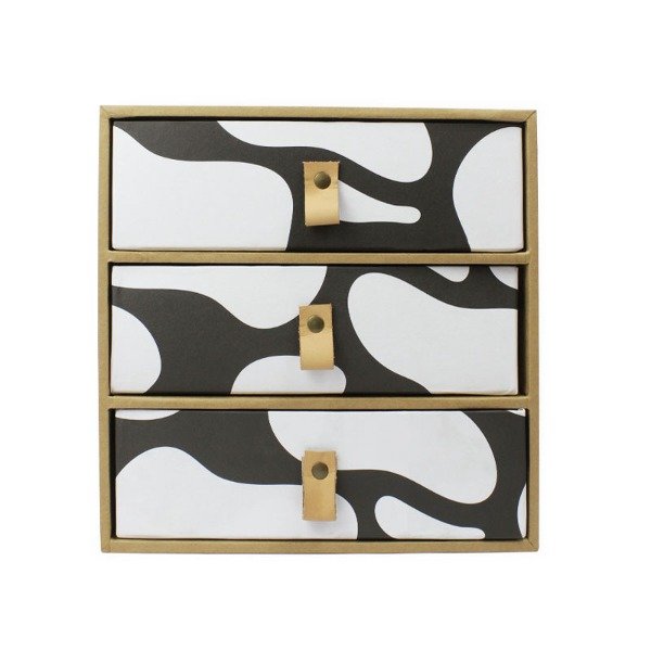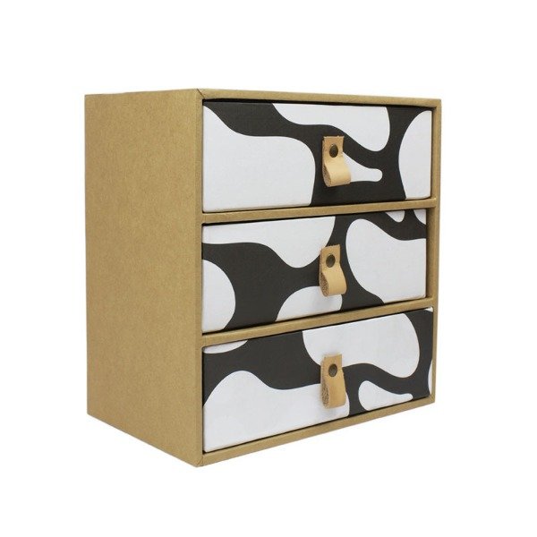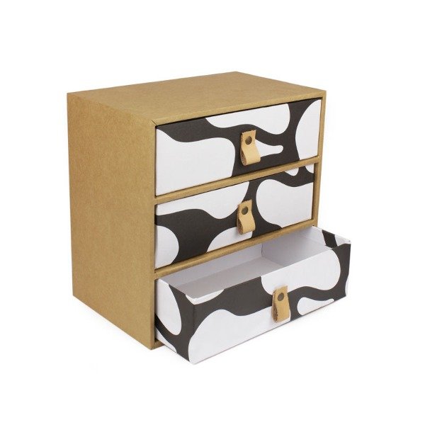 Módulo 2 cajones organizador. Estructura de madera con cajones en cartón prensado de alta densidad, cosidos con alambre y forradas artesanalmente para asegurar su resistencia y durabilidad.