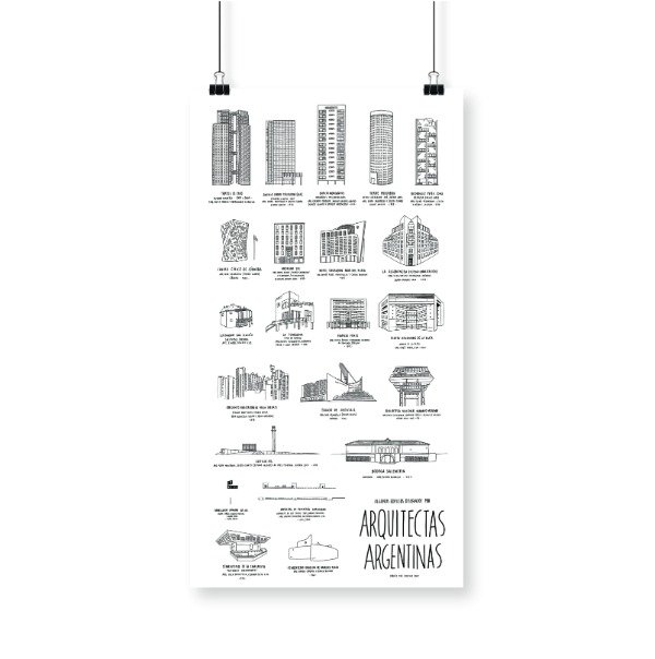 Ilustración x Josefina Jolly de los edificios a lo largo y ancho de nuestro país en donde participaron Arquitectas Argentinas, aunque no hayan sido las titulares tienen mucho más que ver con su realización de lo que se sabe.