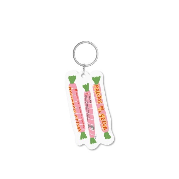 Llavero acrílico con argolla plana. Ilustración por Josefina Jolly